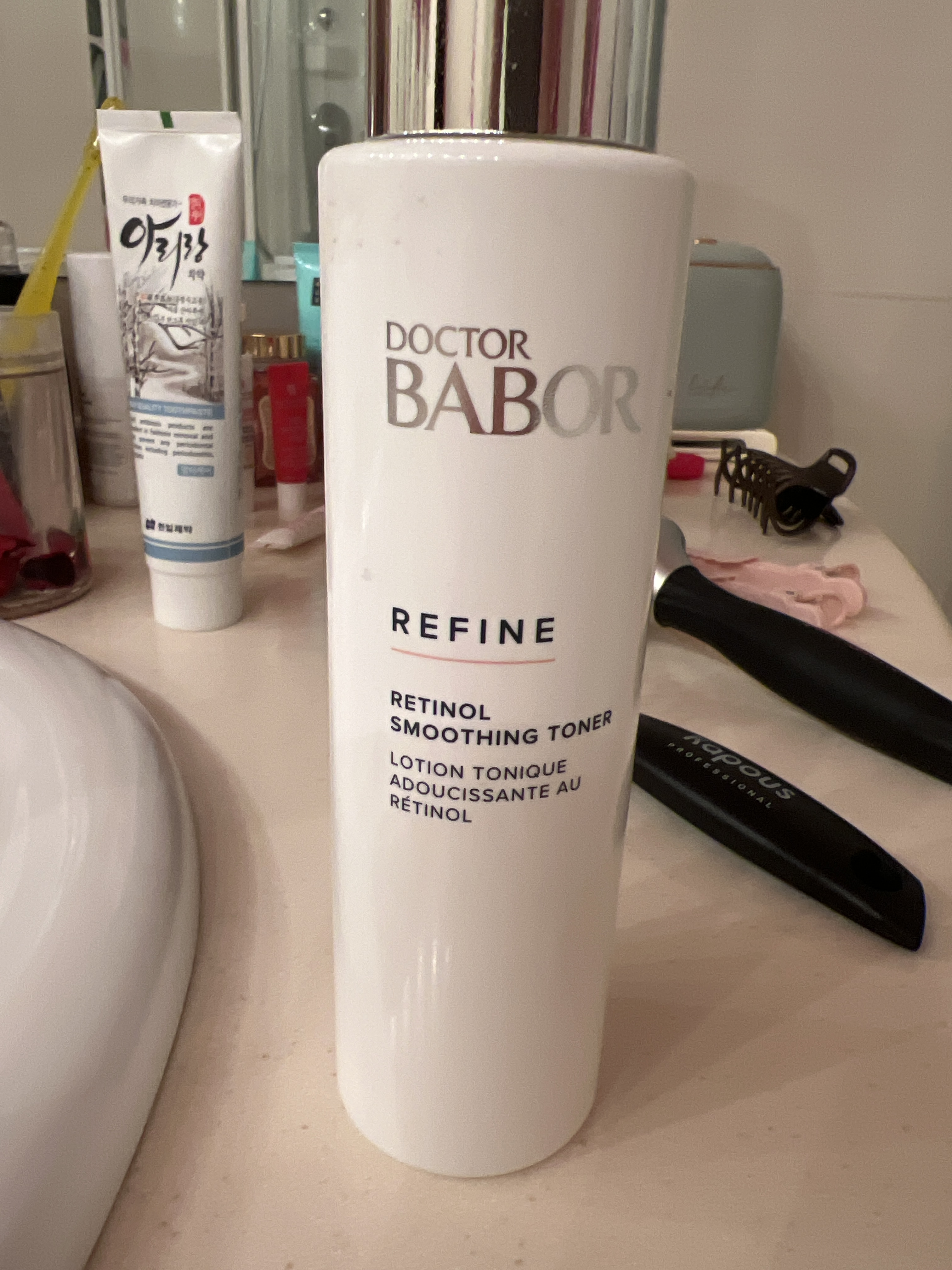 С данным тоником столкнулась в тревел версии, отнеслась к нему скептически) пока не увидела результат. Наношу перед сном после термо умывалки  и перед кремом. На утро лицо свежее и самое что главное для меня, уходят мелкие покраснения. Цвет лица становится однородным свежим а сама кожа бархатная. Поэтому решила заказать большой объем. Спасибо Бабор